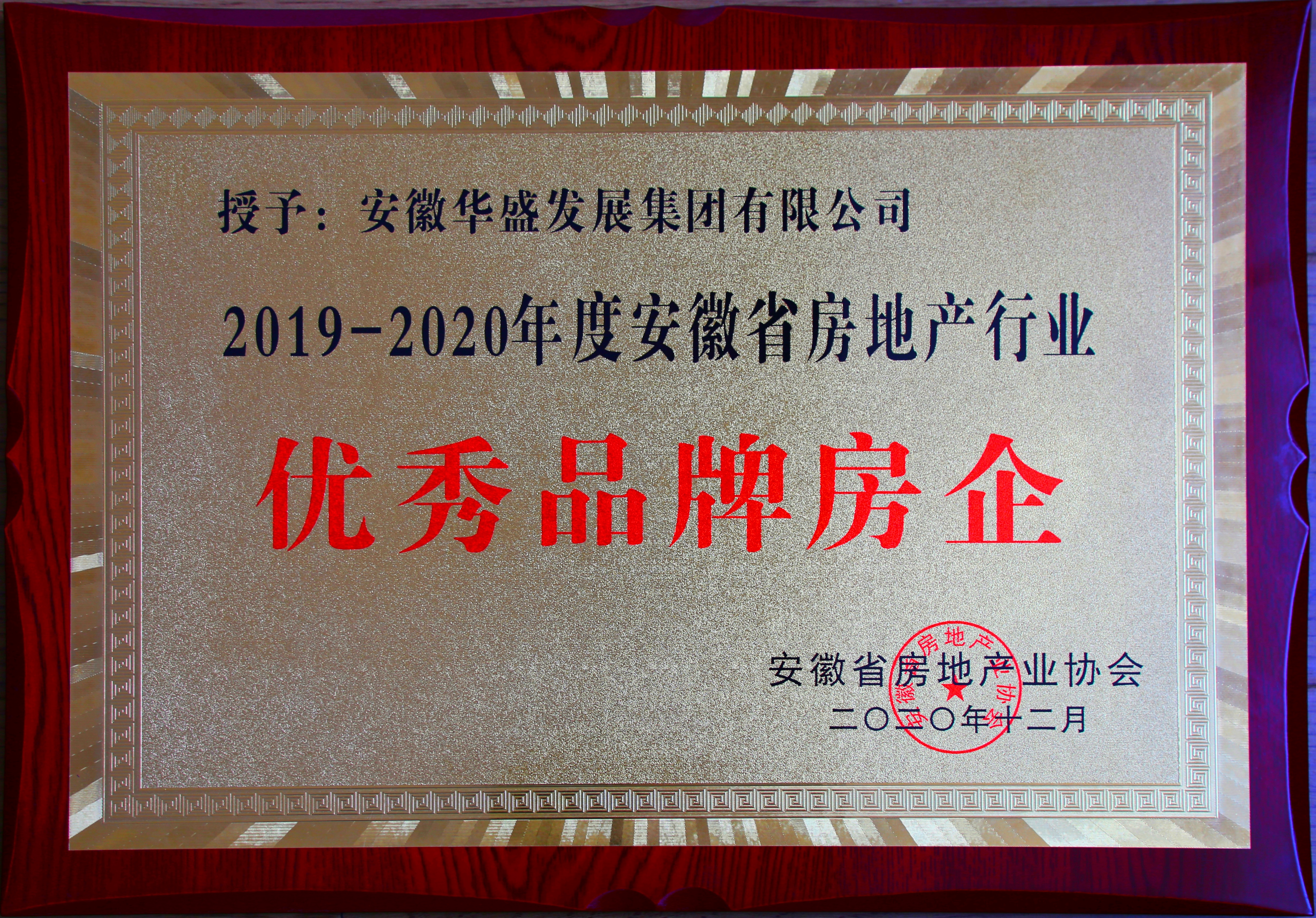 2019-2020年度安徽省房地产行业优秀品牌房企