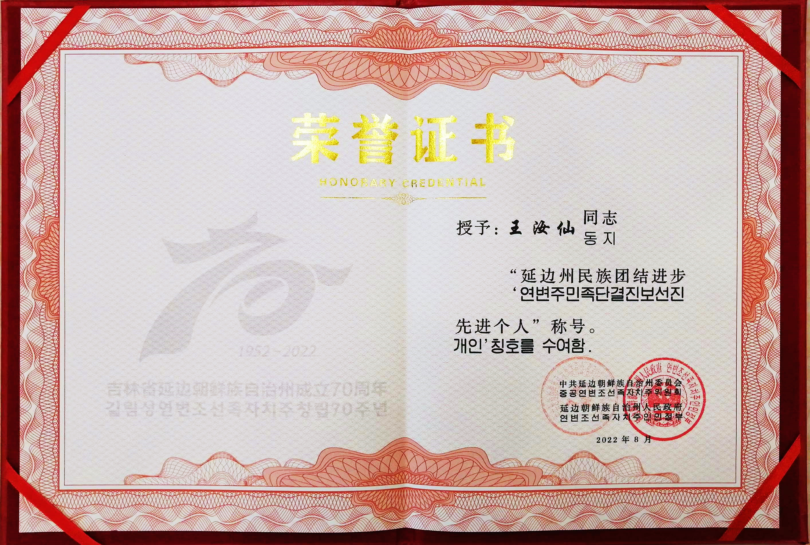 吉林省延边朝鲜族自治州成立70周年贡献奖